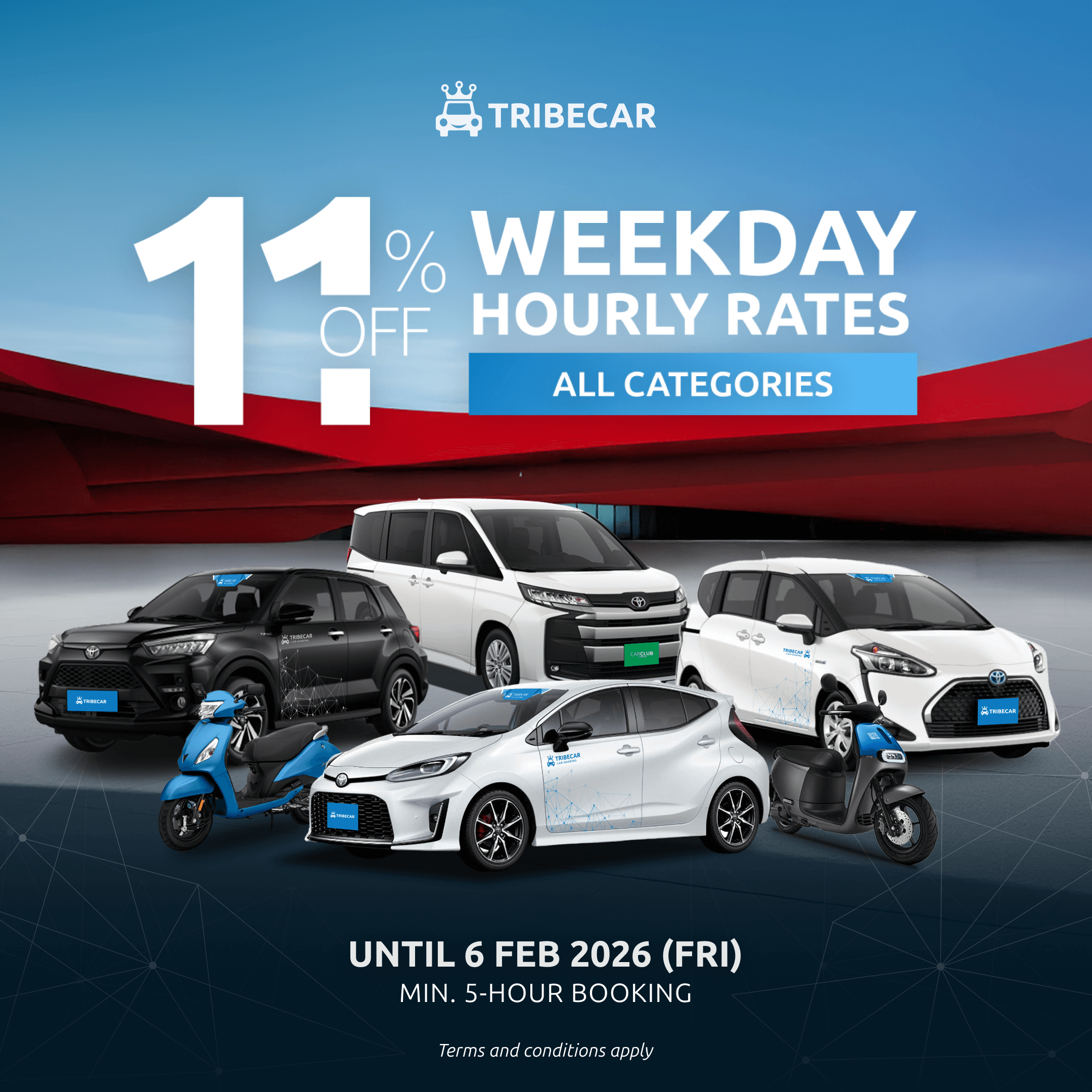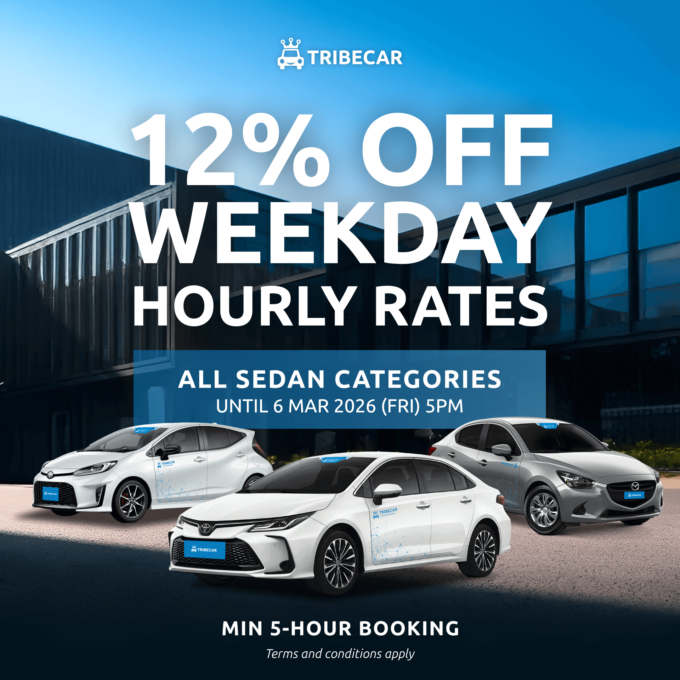 Tribecar cars are parked conveniently near walking distance from the MRT stations.